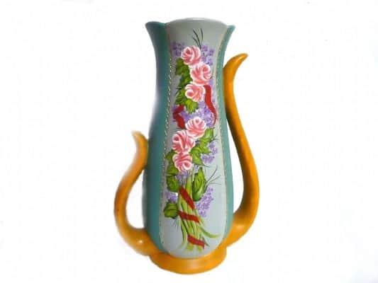כד שולחני מעוטר בורדים בצבעי אקריליק.