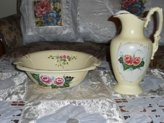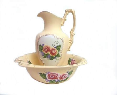 הכד נצבע בצבעי אקריליק מעוטר בורדים