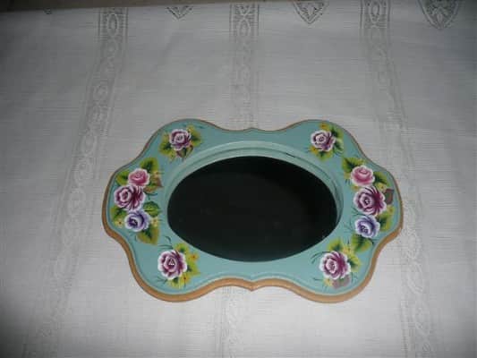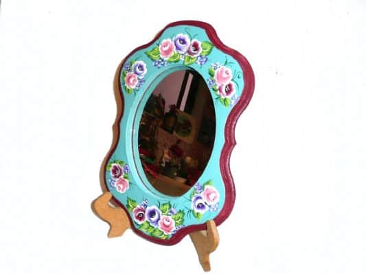 מסגרת המראה מצויירת בצבעי אקריליק מעוטרת בפרחים