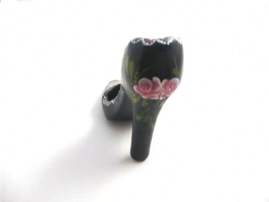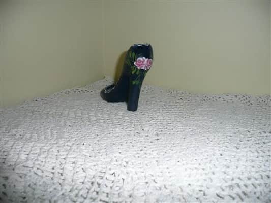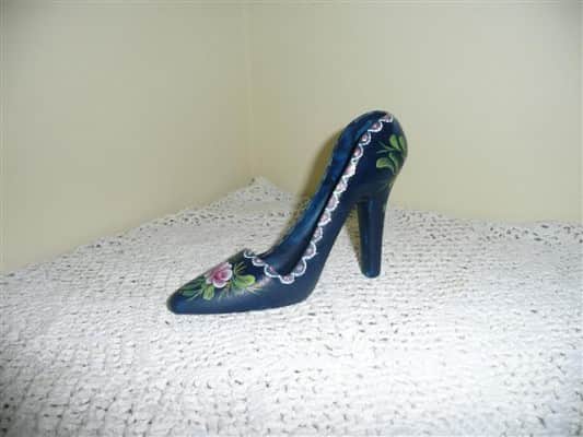 הנעל נצבעה בצבעי אקריליק מעוטרת בורדים