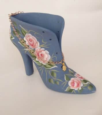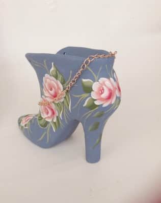 המגף נצבע בצבעי אקריליק מעוטר בורדים