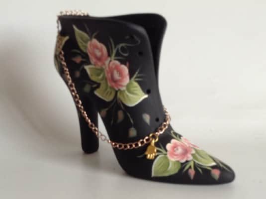 המגף נצבע בצבעי אקריליק מעוטר בורדים
