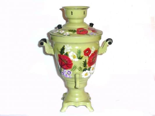 הסמובר מעוטר בפרגים בצבעי אקריליק