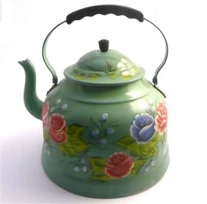 קומקום אלומניום מעוטר בוורדים בצבעי אקריליק