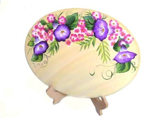 השלט מעוטר בצבעי אקריליק ומעוטר בפרחים