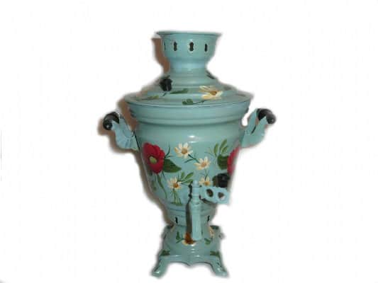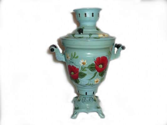 הסמובר מעוטר בפרגים בצבעי אקריליק