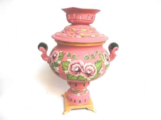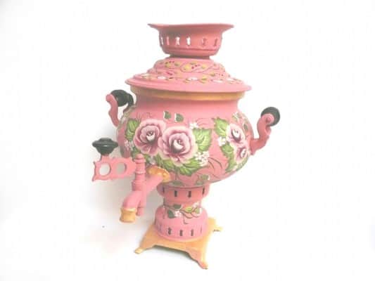 הסמובר מעוטר בורדים בצבעי אקריליק