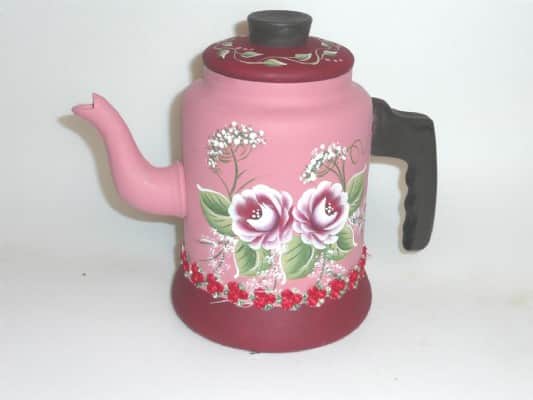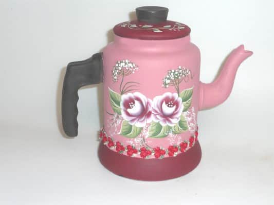 קומקום אלומניום מעוטר בוורדים בצבעי אקריליק