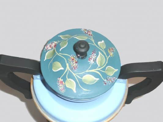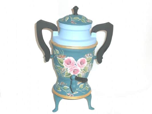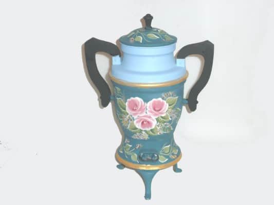 הסמובר מעוטר בורדים בצבעי אקריליק
