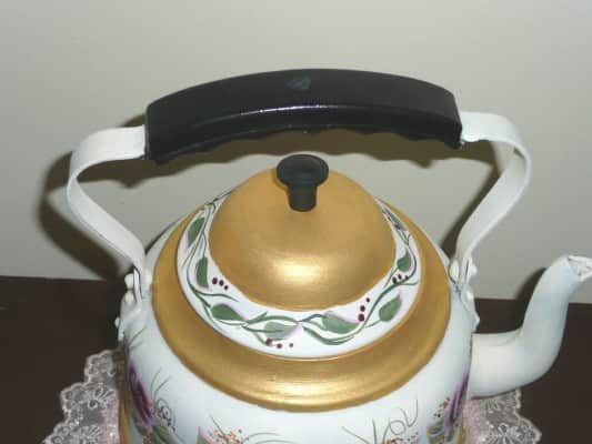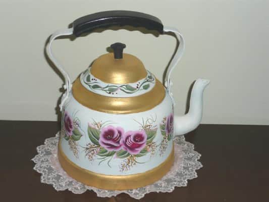 קומקום אלומניום מעוטר בוורדים בצבעי אקריליק