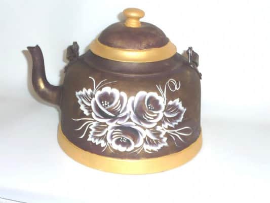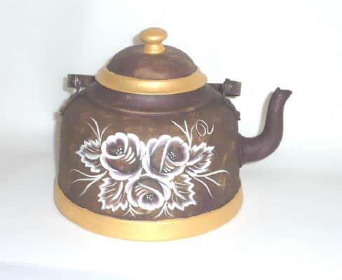 קומקום אלומניום מעוטר בוורדים בצבעי אקריליק