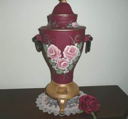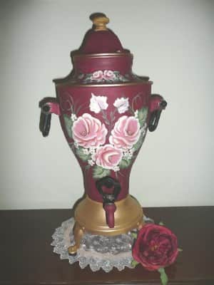 הסמובר מעוטר בורדים בצבעי אקריליק
