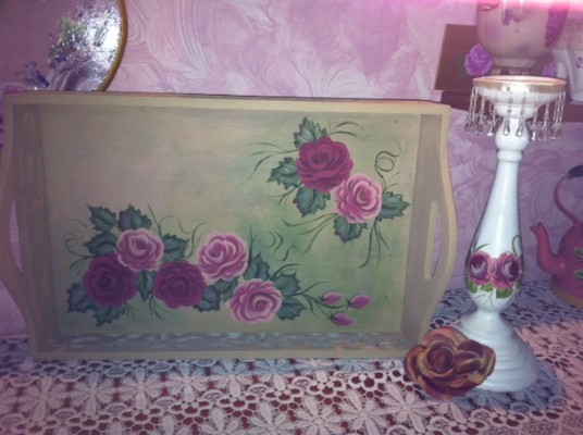 מגש לארוח-ציור על עץ
