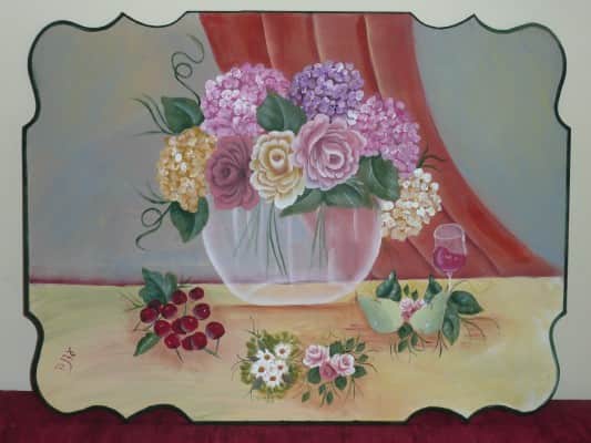 פרחים באגרטל זכוכית-ציור על עץ