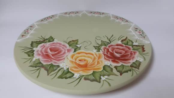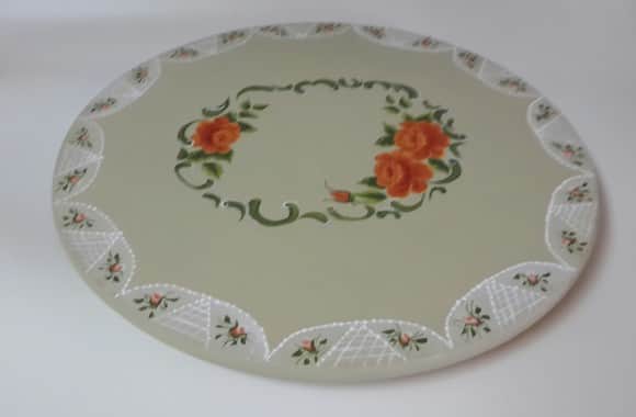 פלטה מסתובבת מתאימה לשולחן חג,שבת ויום חול הורדים מצוירים בצבעי אקריליק וגימור על בסיס מים קוטר-38 ס"מ |